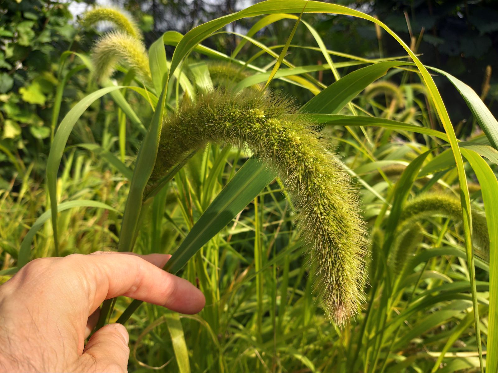Tak czy inaczej w sierpniu, czasem wcześniej, będziemy mieli do dyspozycji zielone kłosy prosa, a we wrześniu okazałe kłosy włośnicy, czyli proso senegalskie (na zdjęciu moje roślinki w ogródku z 20 września, posadzone pod koniec maja):